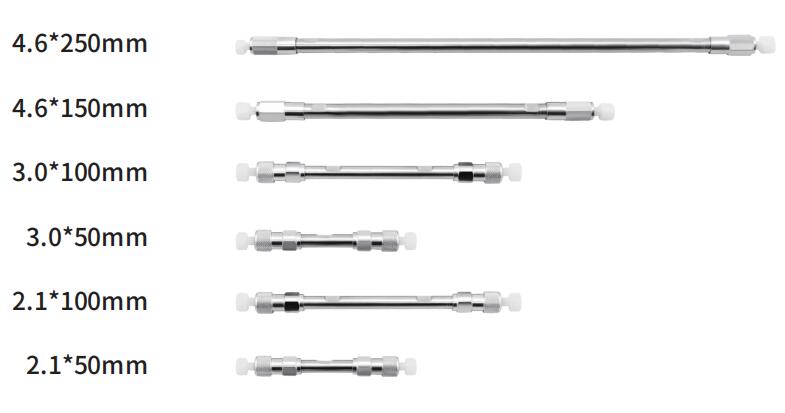 常用產(chǎn)品規(guī)格(mm) 2.1*50、2.1*100、3.0*50、3.0*100、4.6*50、4.6*100、4.6*150、4.6*250