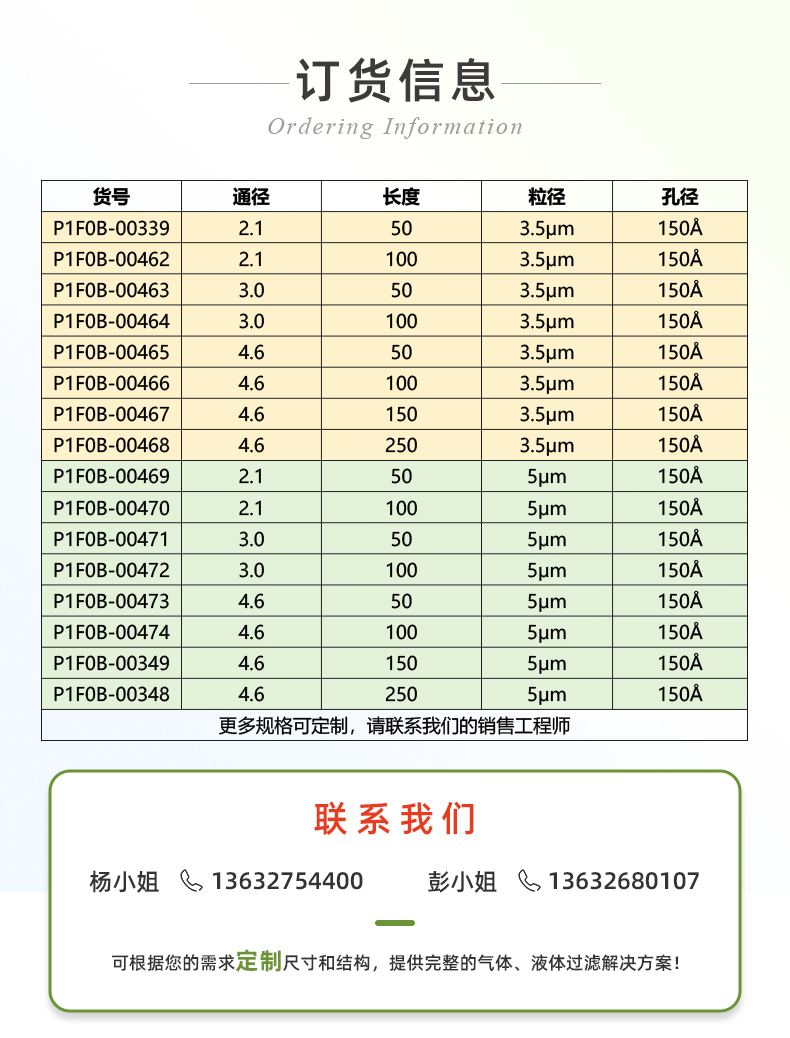 | 常用產(chǎn)品規(guī)格(mm) | 2.1*50、2.1*100、3.0*50、3.0*100、4.6*50、4.6*100、4.6*150、4.6*250 | ||