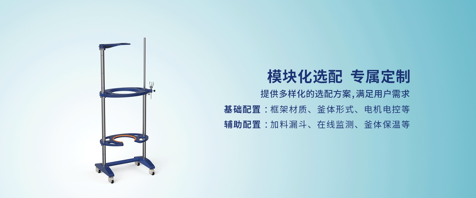 8、模塊化選配,提供多樣化的選配方案,滿足用戶需求?;A(chǔ)配置:框架材質(zhì),釜體形式,電機(jī)電控等。輔助配置:加料漏斗,在線監(jiān)測,釜體保溫等。