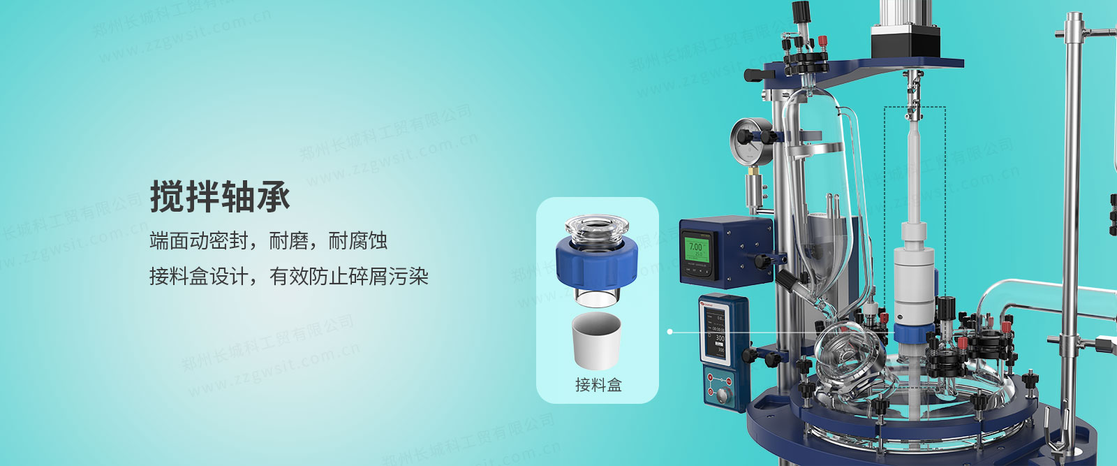 4、便捷的固料開啟方式:高硼硅玻璃堵頭,易于清潔,耐腐蝕性更好,不銹鋼快開卡扣,使投料和拆卸過程方便,密封采用包氟O型圈,無需涂抹硅脂;