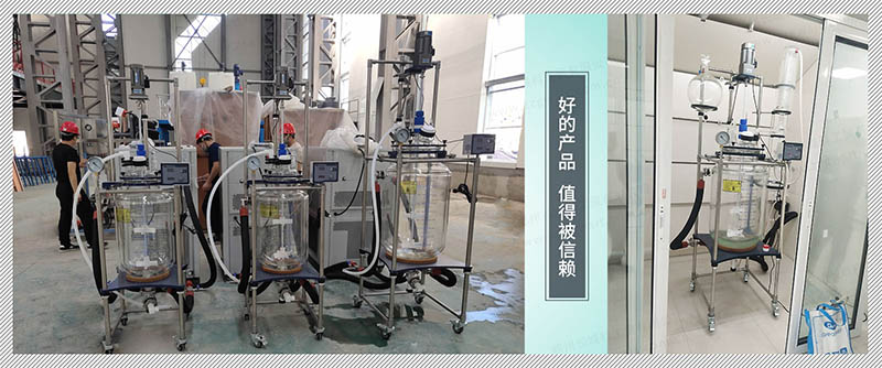 80~100L調(diào)速玻璃反應釜主要是通過調(diào)節(jié)恒壓漏斗或加料瓶上的調(diào)節(jié)閥控制物料均勻滴加,利用冷凝器的熱交換功能蒸餾回收反應產(chǎn)物,用于中試級物料的合成、蒸餾、濃縮等實驗。釜體有單層、雙層及三層三種。常與高溫/低溫/恒溫循環(huán)器,高低溫循環(huán)裝置,隔膜真空泵,循環(huán)水式多用真空泵組成配套裝置,滿足生產(chǎn)需求。