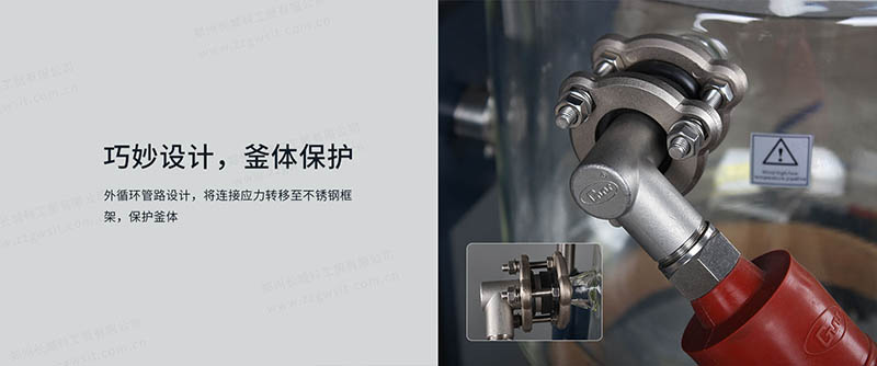 ● 夾套進、出液口連接不銹鋼保溫軟管,減少進出液口應(yīng)力。