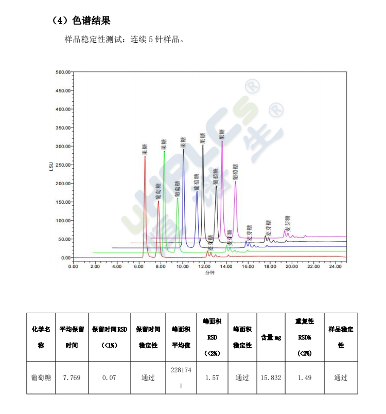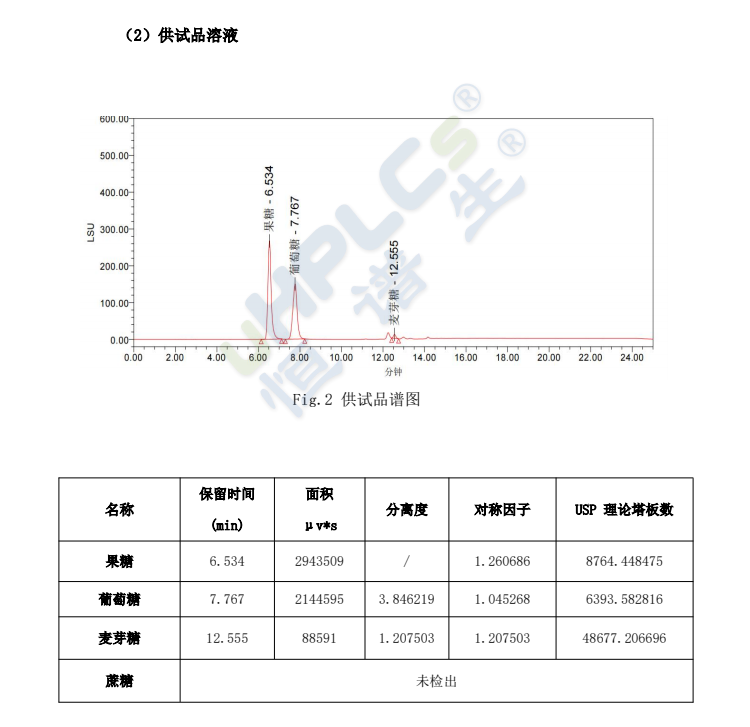 1、蜂蜜及蜂產(chǎn)品中果糖、葡萄糖、蔗糖、麥芽糖這4種糖的定量檢測