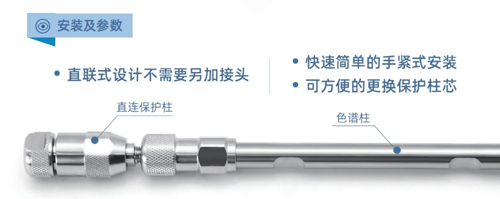 答:2.1超高壓直連色譜保護(hù)柱采用直連式設(shè)計(jì),省去了中間的連接管路和接頭螺絲,安裝非常方便。只需簡單的手緊式安裝即可完成操作,無需借助特殊工具,即使是非專業(yè)技術(shù)人員也能輕松完成。
